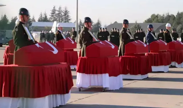 Gürcistan-Azerbaycan sınırında düşen askeri kargo uçağında şehit olan 20 askerin cenazeleri, dün akşam Tiflis'ten Ankara'ya getirildi. Ankara Adli Tıp Kurumu’ndaki otopsi işlemlerinin ardından şehitler için Kahramankazan ilçesindeki Mürted Hava Meydan Komutanlığı'nda tören düzenlendi. Törene, şehit aileleri ve yakınlarının yanı sıra TBMM Başkanı Numan Kurtulmuş, Milli Savunma Bakanı Yaşar Güler, Aile ve Sosyal Hizmetler Bakanı Mahinur Özdemir Göktaş, Genelkurmay Başkanı Orgeneral Selçuk Bayraktaroğlu, Ankara Valisi Vasip Şahin katıldı. Törende, şehitler için saygı duruşunda bulunuldu, öz geçmişleri okundu ve dua edildi. Törende şehit yakınları tabutlara sarılarak, gözyaşı döktü.