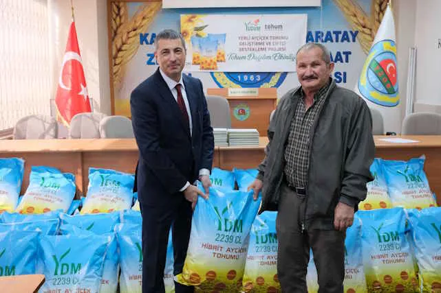 Yerli Ayçiçeği Tohumu Geliştirme ve Çiftçi Destekleme Projesi kapsamında 2026 yılında dört farklı ilde çiftçilere hibe tohum dağıtımı gerçekleştirildi. Türkiye’nin en fazla ayçiçeği üreten bölgeleri arasında yer alan Konya Karatay, Tekirdağ Malkara, Edirne Uzunköprü ve Kırklareli Lüleburgaz’da toplam 180 torba “YDM 2239” tohumu üreticilere ulaştırıldı. 12 Mart’ta Konya’daki tohum dağıtımına Tiryaki Markalı Ürünler Genel Müdürü Kemal Güven de katıldı.